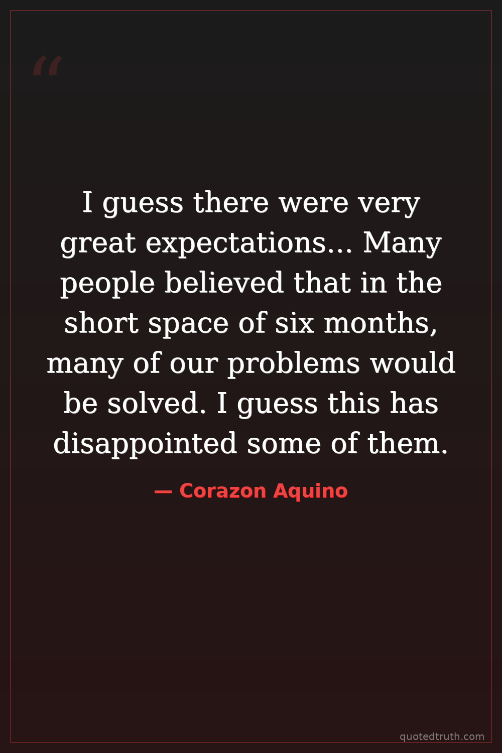 I guess there were very great expectations... Many people believed that in the short space of six months, many of our problems would be solved. I guess this has disappointed some of them.