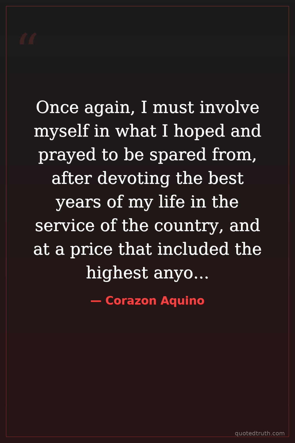 Once again, I must involve myself in what I hoped and prayed to be spared from, after devoting the best years of my life in the service of the country, and at a price that included the highest anyone can pay.