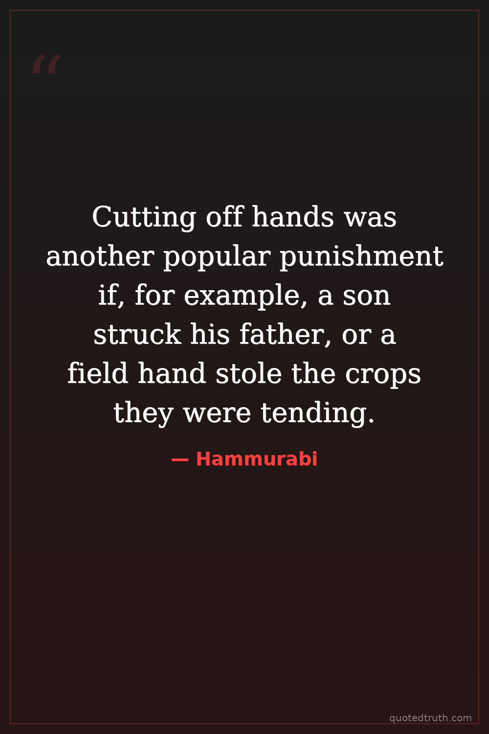 Cutting off hands was another popular punishment if, for example, a son struck his father, or a field hand stole the crops they were tending.