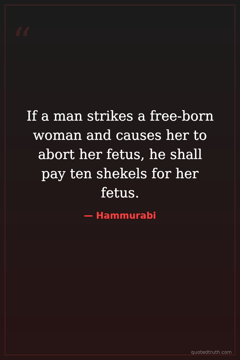 If a man strikes a free-born woman and causes her to abort her fetus, he shall pay ten shekels for her fetus.