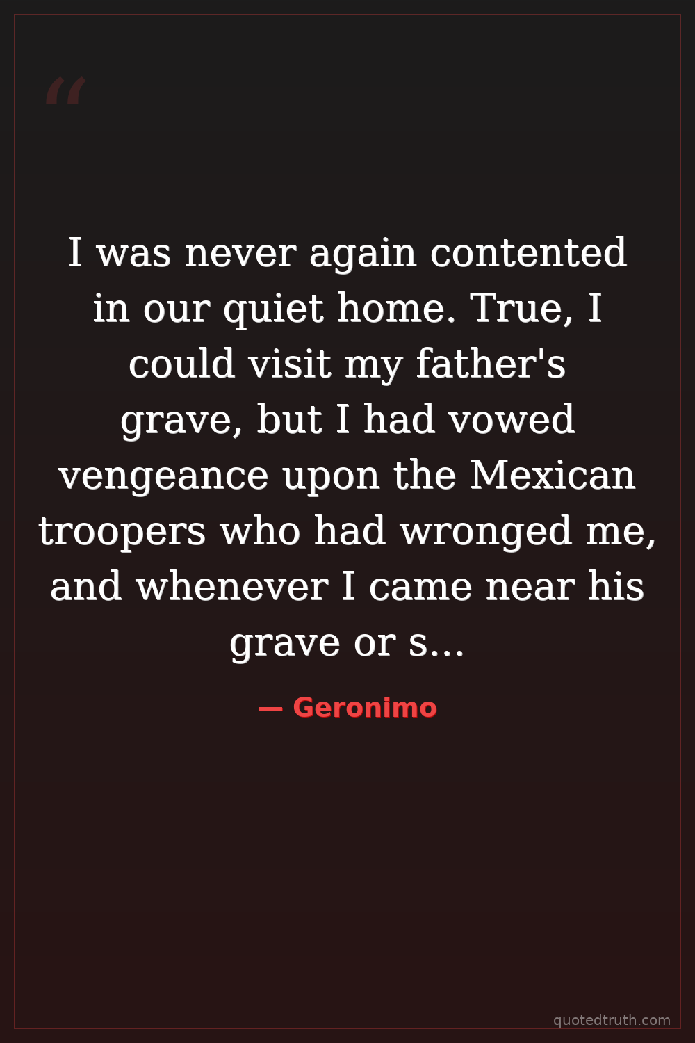 I was never again contented in our quiet home. True, I could visit my father's grave, but I had vowed vengeance upon the Mexican troopers who had wronged me, and whenever I came near his grave or saw anything to remind me of former happy days, my heart would ache for revenge upon Mexico.