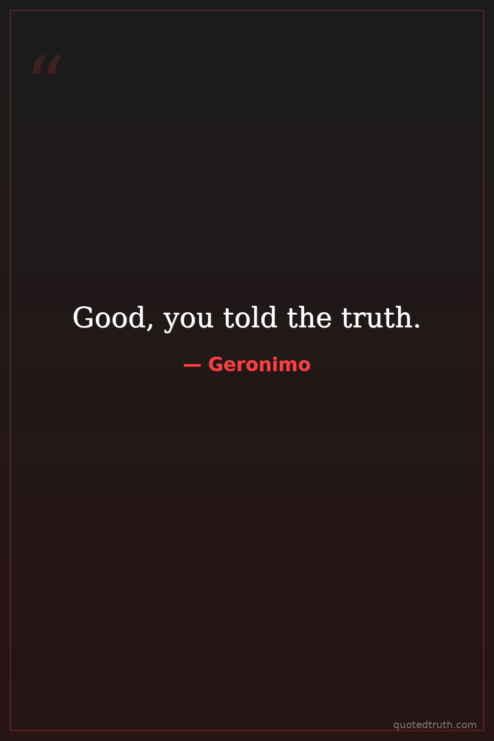 Good, you told the truth.