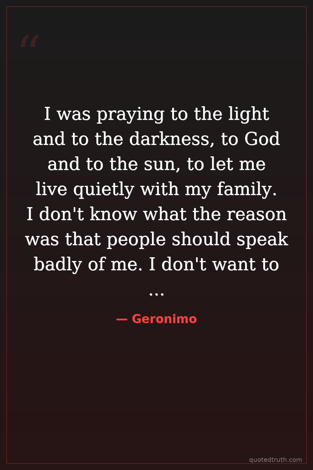 I was praying to the light and to the darkness, to God and to the sun, to let me live quietly with my family. I don't know what the reason was that people should speak badly of me. I don't want to be blamed. The fault was not mine. Blame those three men.