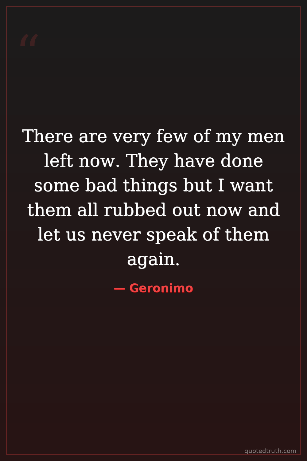 There are very few of my men left now. They have done some bad things but I want them all rubbed out now and let us never speak of them again.
