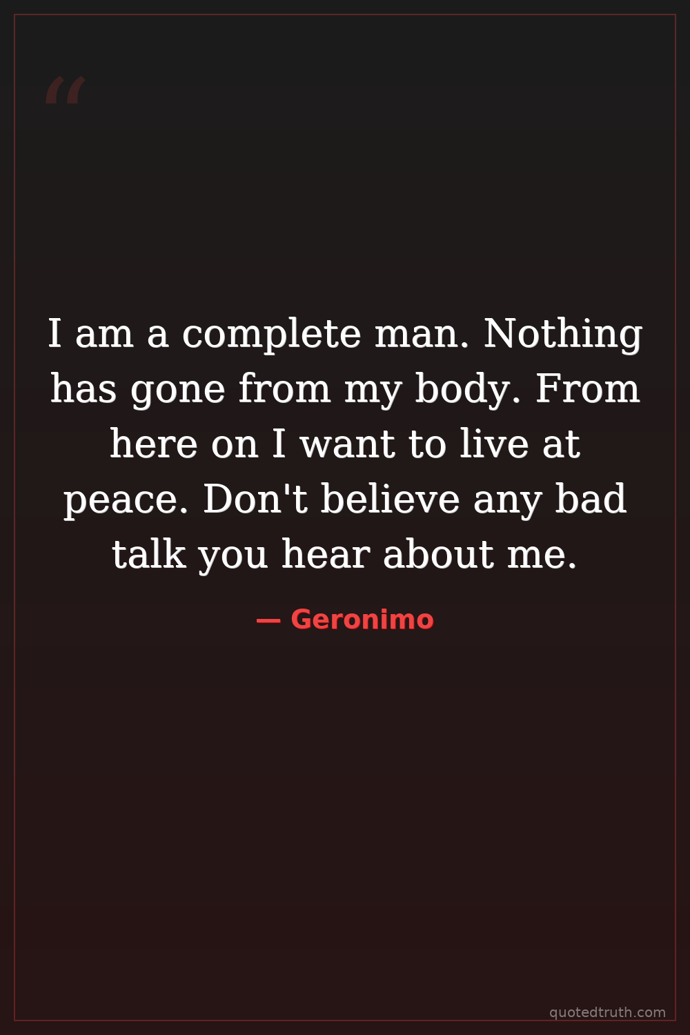 I am a complete man. Nothing has gone from my body. From here on I want to live at peace. Don't believe any bad talk you hear about me.