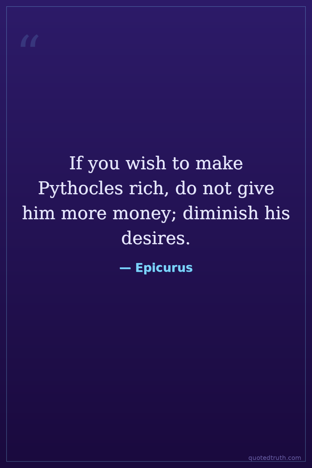 If you wish to make Pythocles rich, do not give him more money; diminish his desires.