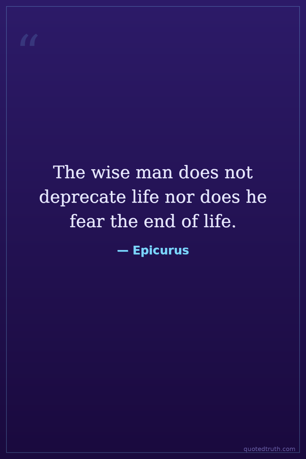 The wise man does not deprecate life nor does he fear the end of life.