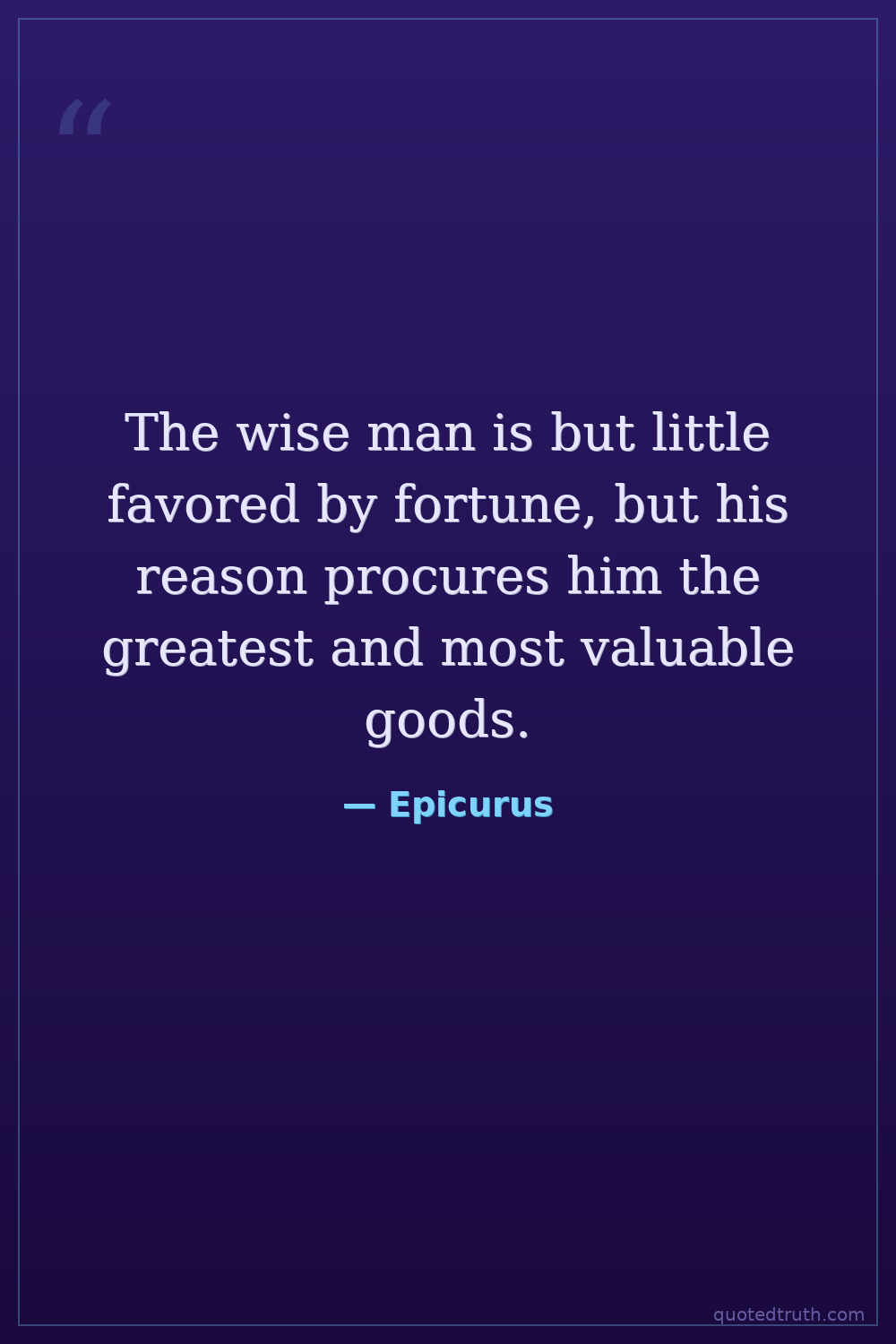 The wise man is but little favored by fortune, but his reason procures him the greatest and most valuable goods.