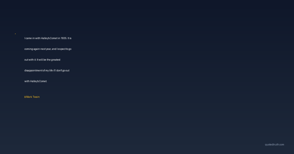 I came in with Halley's Comet in 1835. It is coming again next year, and I expect to go out with it. It will be the greatest disappointment of my life if I don't go out with Halley's Comet.