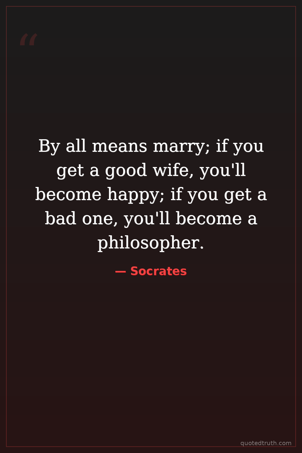 By all means marry; if you get a good wife, you'll become happy; if you get a bad one, you'll become a philosopher.