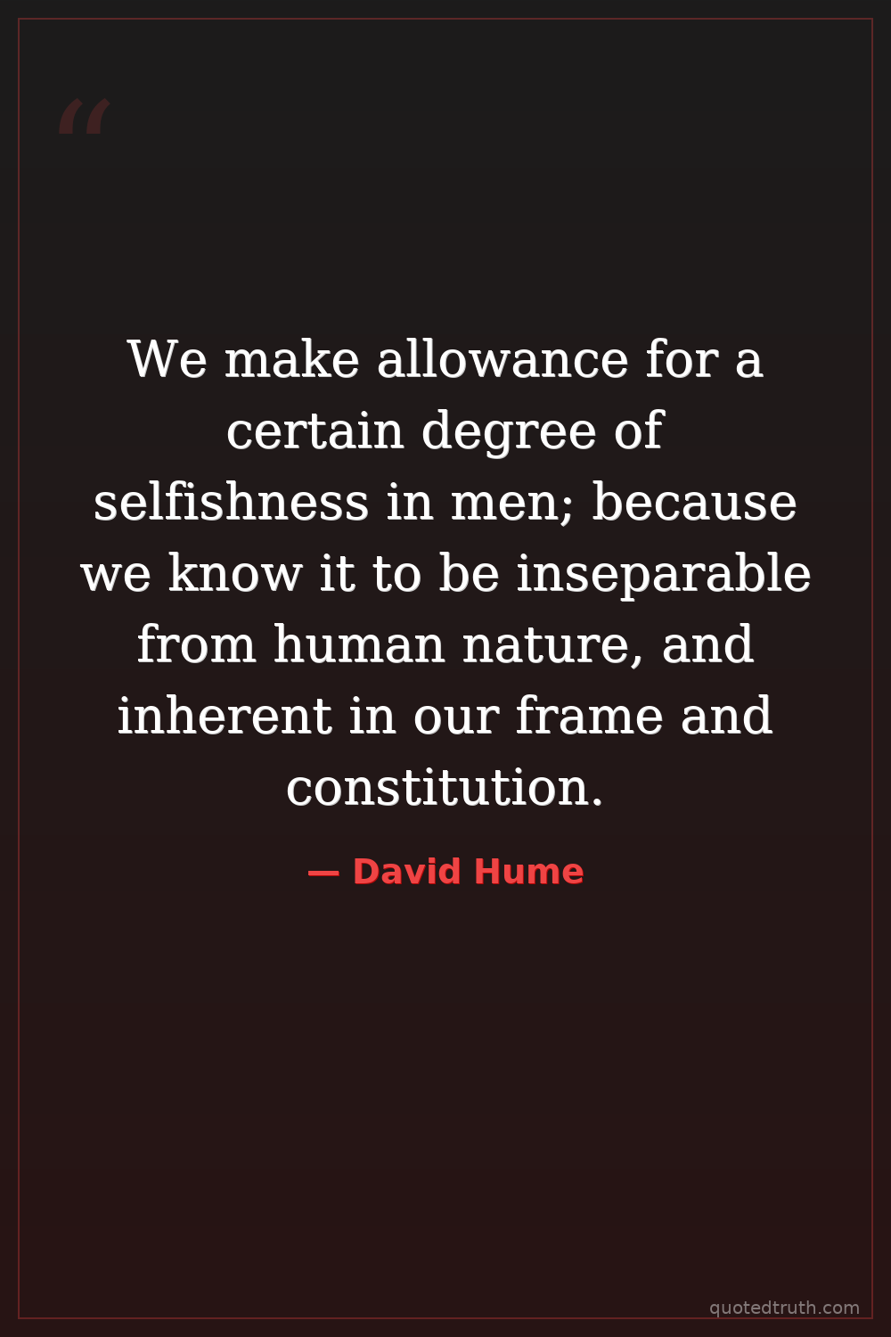 We make allowance for a certain degree of selfishness in men; because we know it to be inseparable from human nature, and inherent in our frame and constitution.