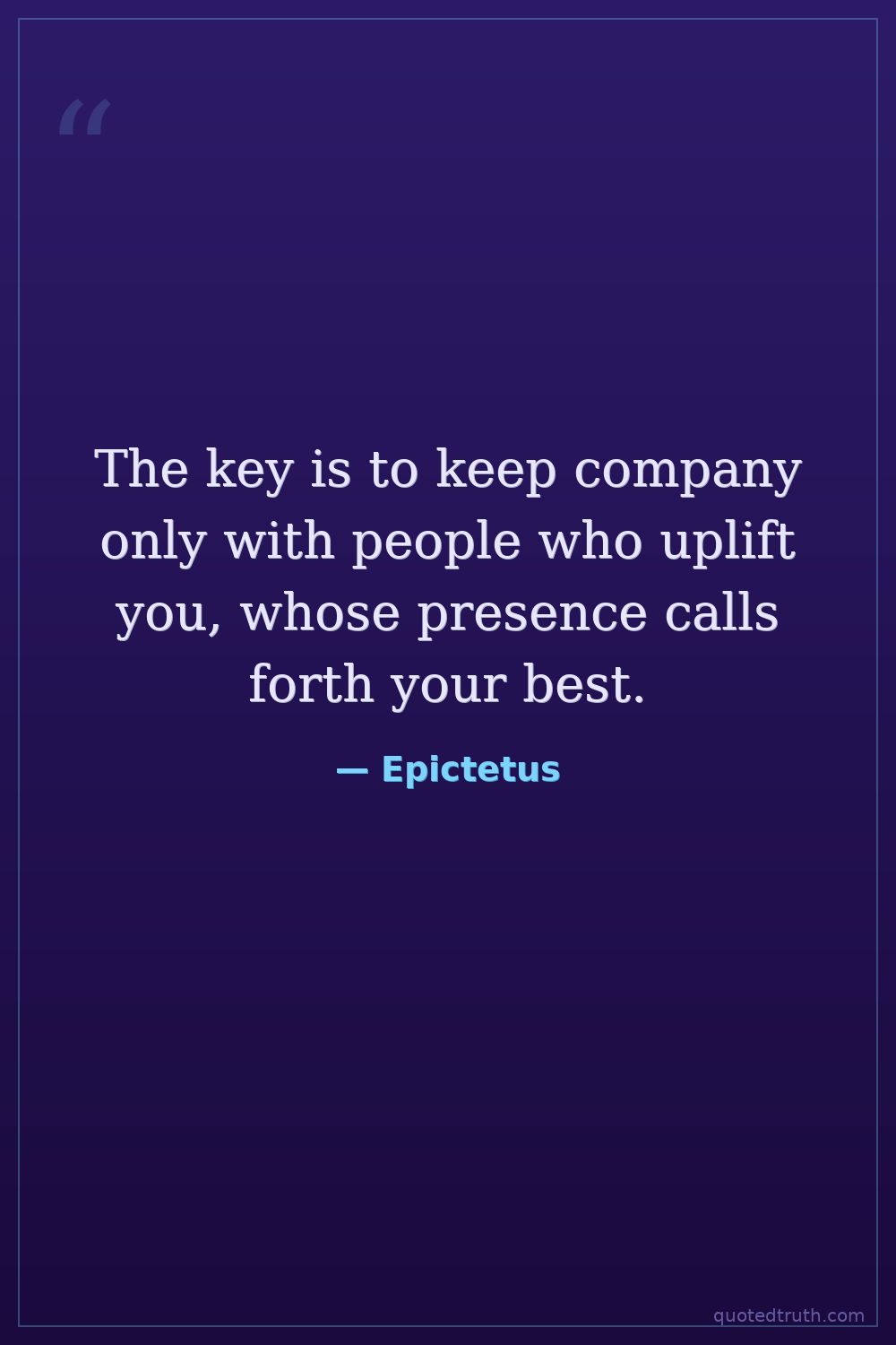 The key is to keep company only with people who uplift you, whose presence calls forth your best.