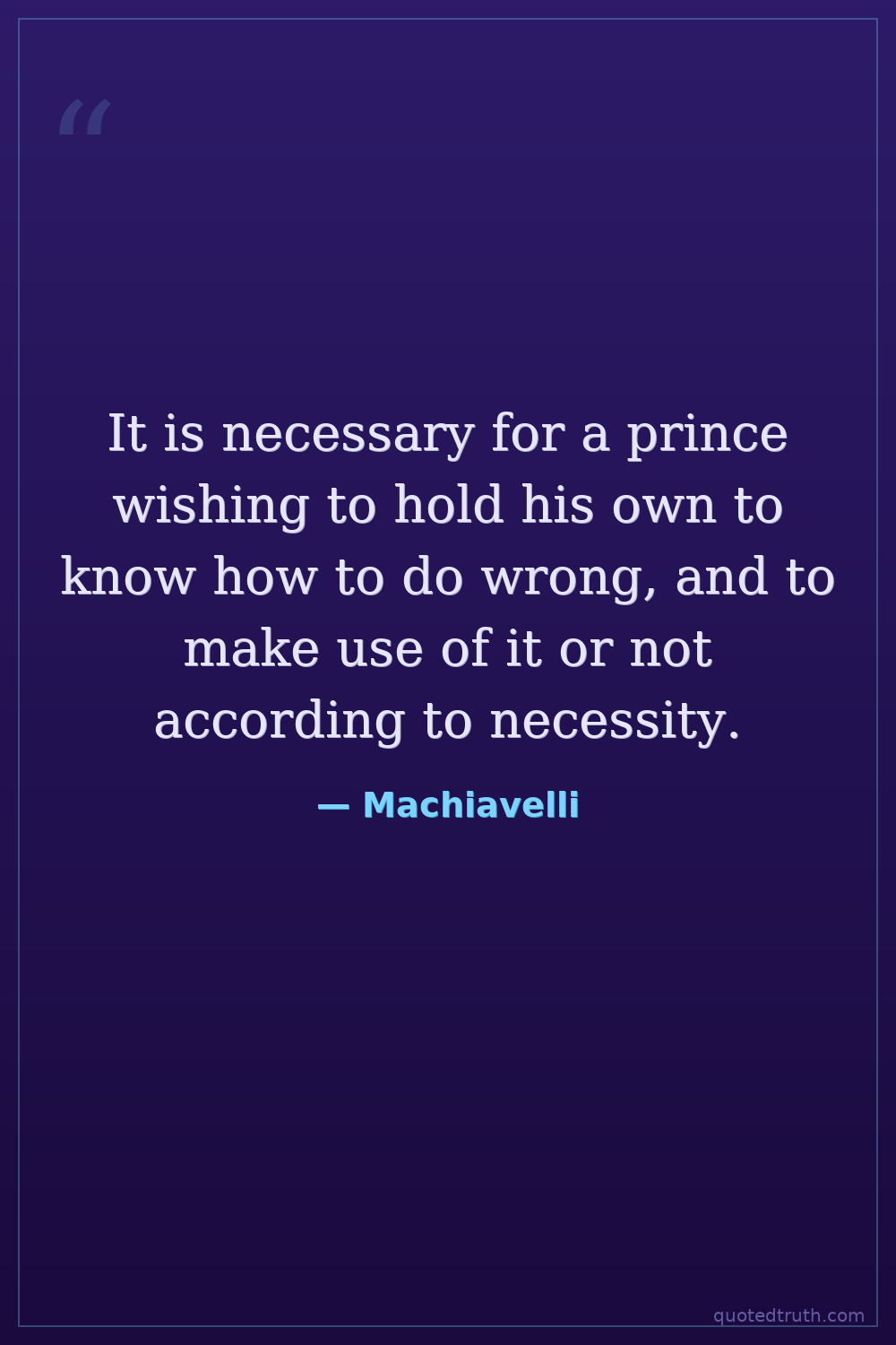 It is necessary for a prince wishing to hold his own to know how to do wrong, and to make use of it or not according to necessity.
