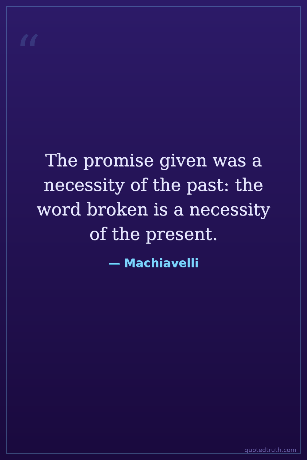 The promise given was a necessity of the past: the word broken is a necessity of the present.