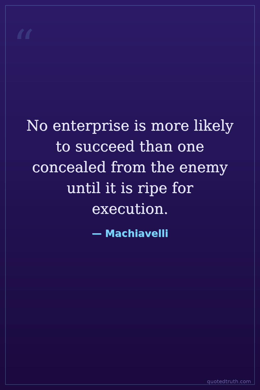 No enterprise is more likely to succeed than one concealed from the enemy until it is ripe for execution.