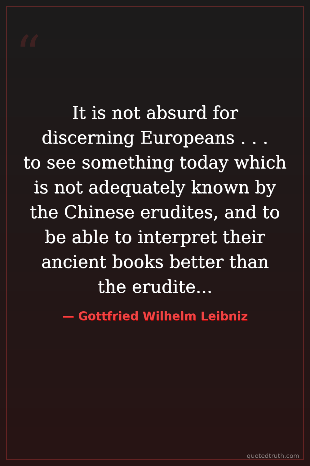 It is not absurd for discerning Europeans . . . to see something today which is not adequately known by the Chinese erudites, and to be able to interpret their ancient books better than the erudites themselves.