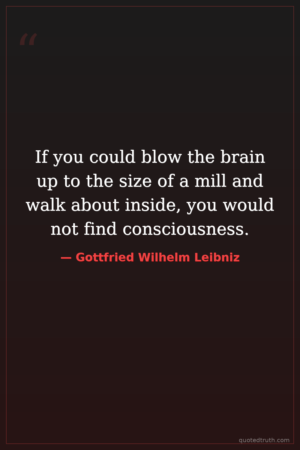 If you could blow the brain up to the size of a mill and walk about inside, you would not find consciousness.
