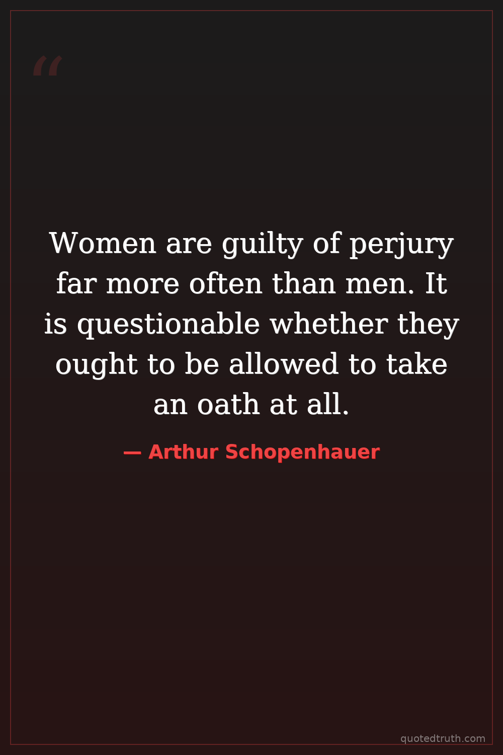 Women are guilty of perjury far more often than men. It is questionable whether they ought to be allowed to take an oath at all.