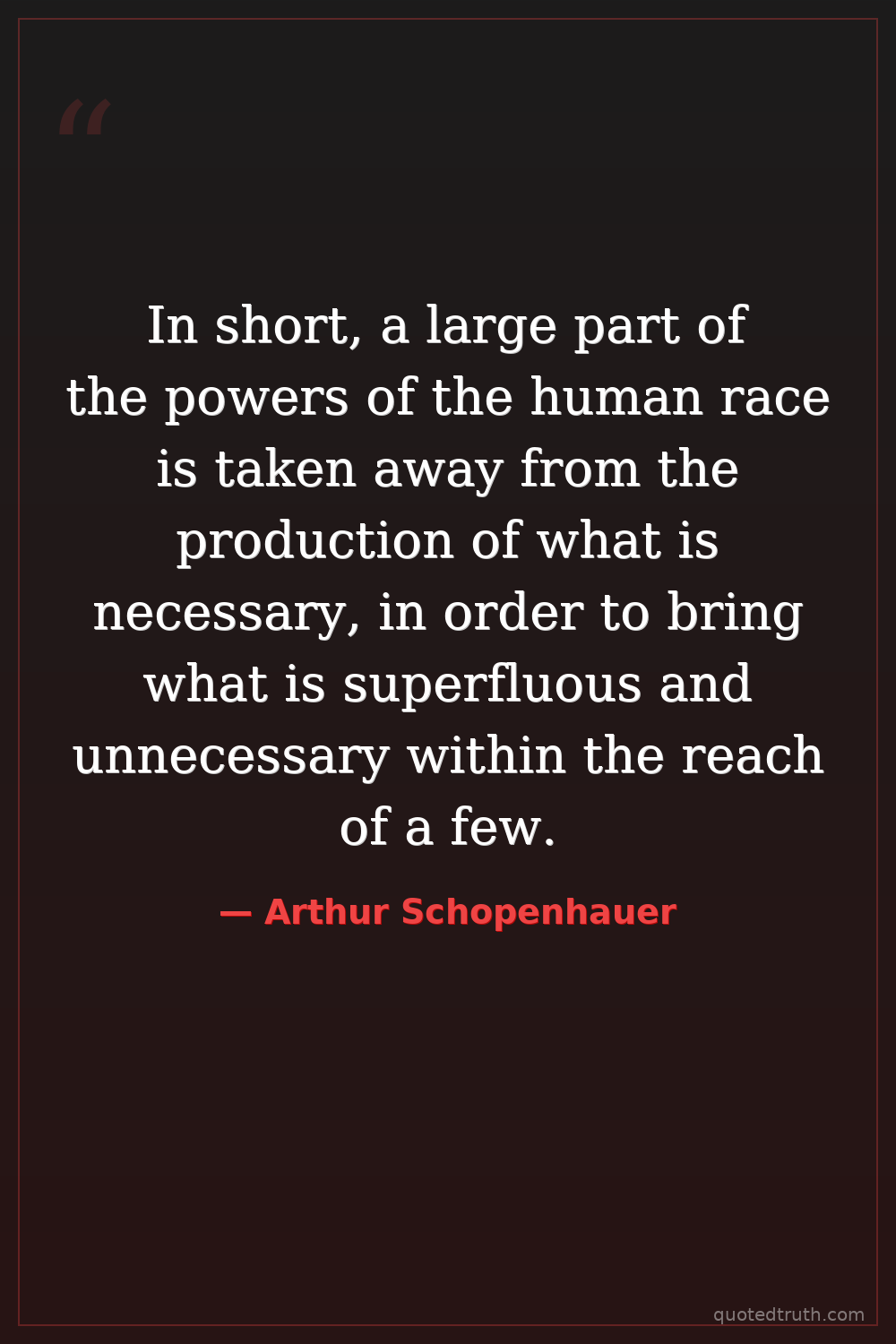 In short, a large part of the powers of the human race is taken away from the production of what is necessary, in order to bring what is superfluous and unnecessary within the reach of a few.