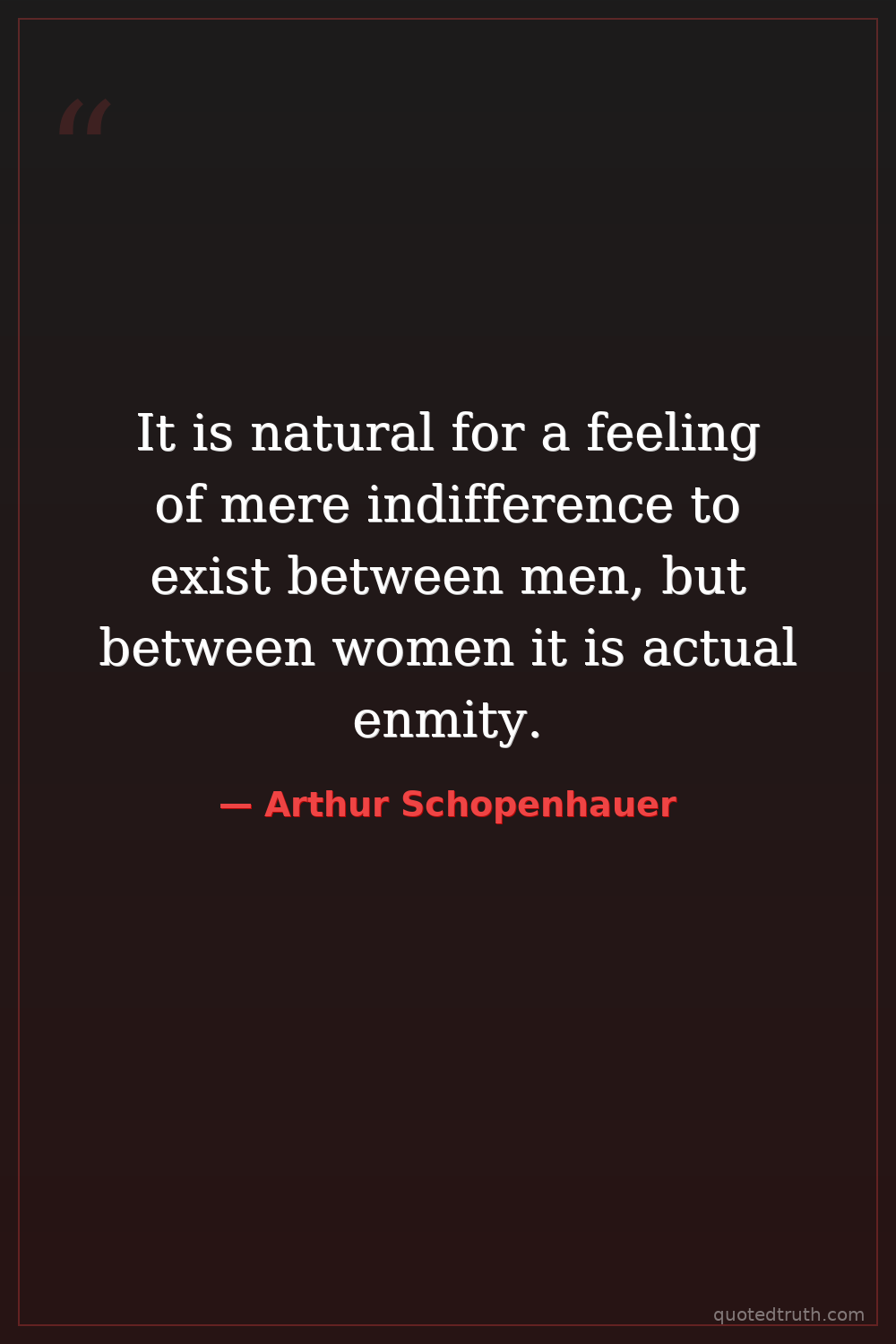It is natural for a feeling of mere indifference to exist between men, but between women it is actual enmity.