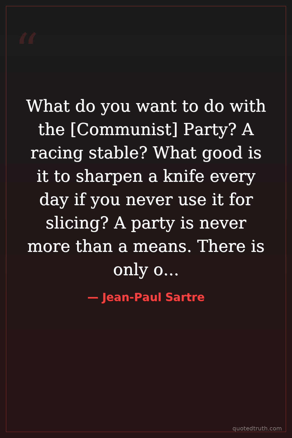 What do you want to do with the [Communist] Party? A racing stable? What good is it to sharpen a knife every day if you never use it for slicing? A party is never more than a means. There is only one objective: power.