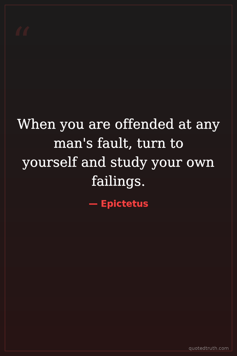When you are offended at any man's fault, turn to yourself and study your own failings.