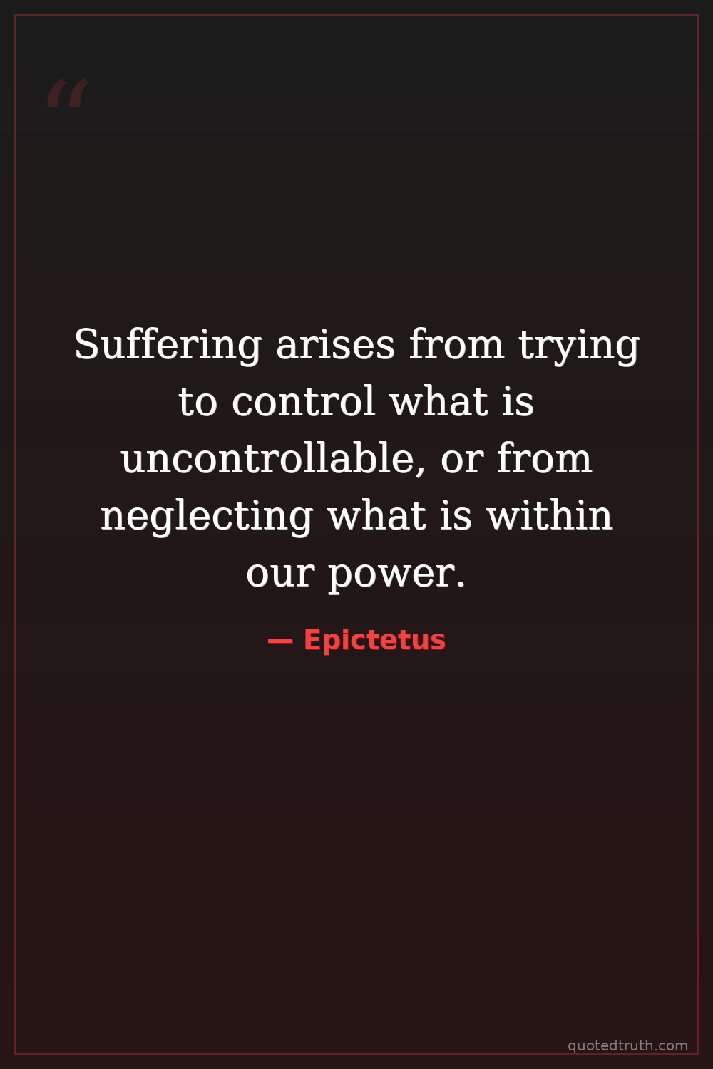 Suffering arises from trying to control what is uncontrollable, or from neglecting what is within our power.