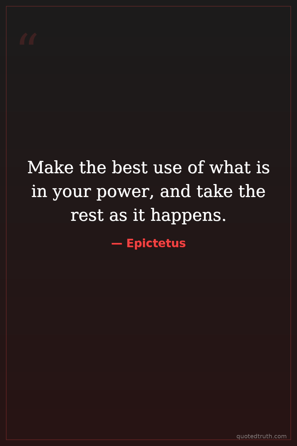 Make the best use of what is in your power, and take the rest as it happens.