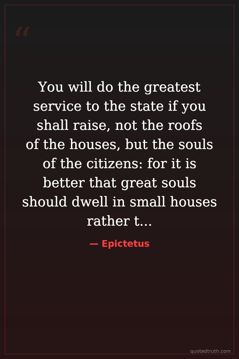 You will do the greatest service to the state if you shall raise, not the roofs of the houses, but the souls of the citizens: for it is better that great souls should dwell in small houses rather than for mean slaves to lurk in great houses.