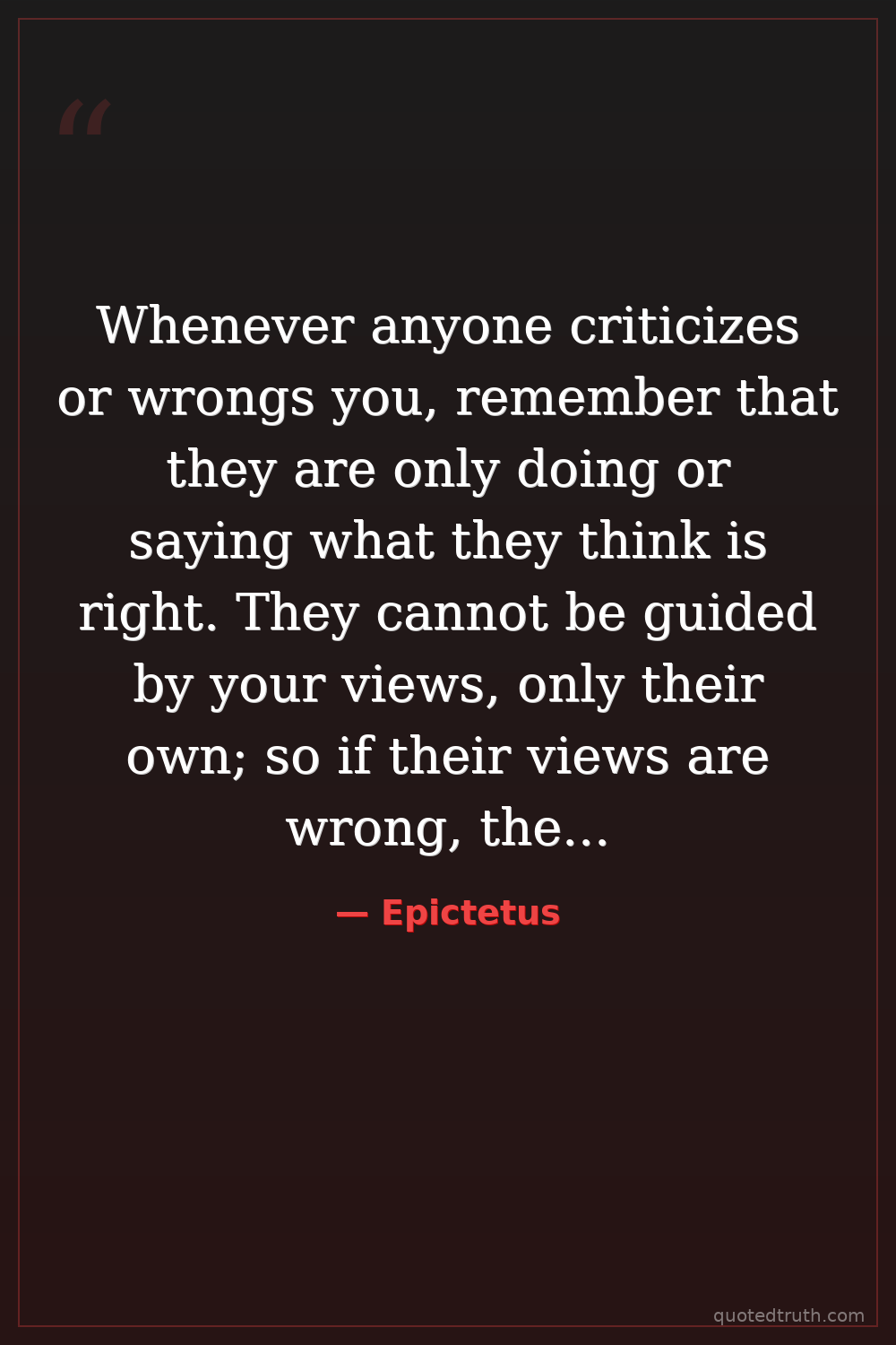 Whenever anyone criticizes or wrongs you, remember that they are only doing or saying what they think is right. They cannot be guided by your views, only their own; so if their views are wrong, they are the ones who suffer insofar as they are misguided.