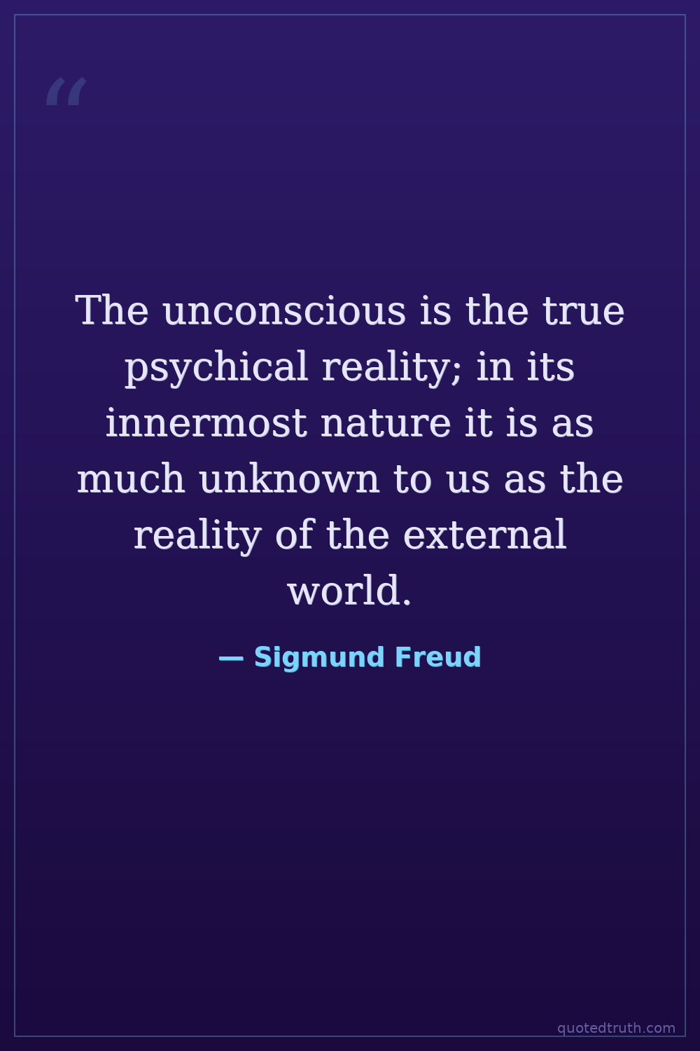 The unconscious is the true psychical reality; in its innermost nature it is as much unknown to us as the reality of the external world.