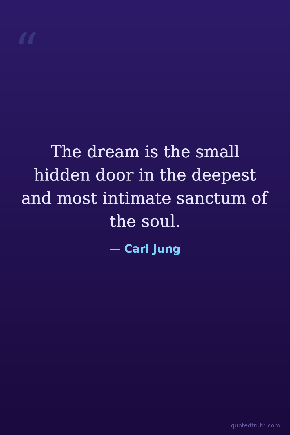 Humorous"The dream is a little hidden door in the innermost and most secret recesses of the soul, opening into that cosmic night which was psyche long before there was any ego-consciousness, and which will rem…"