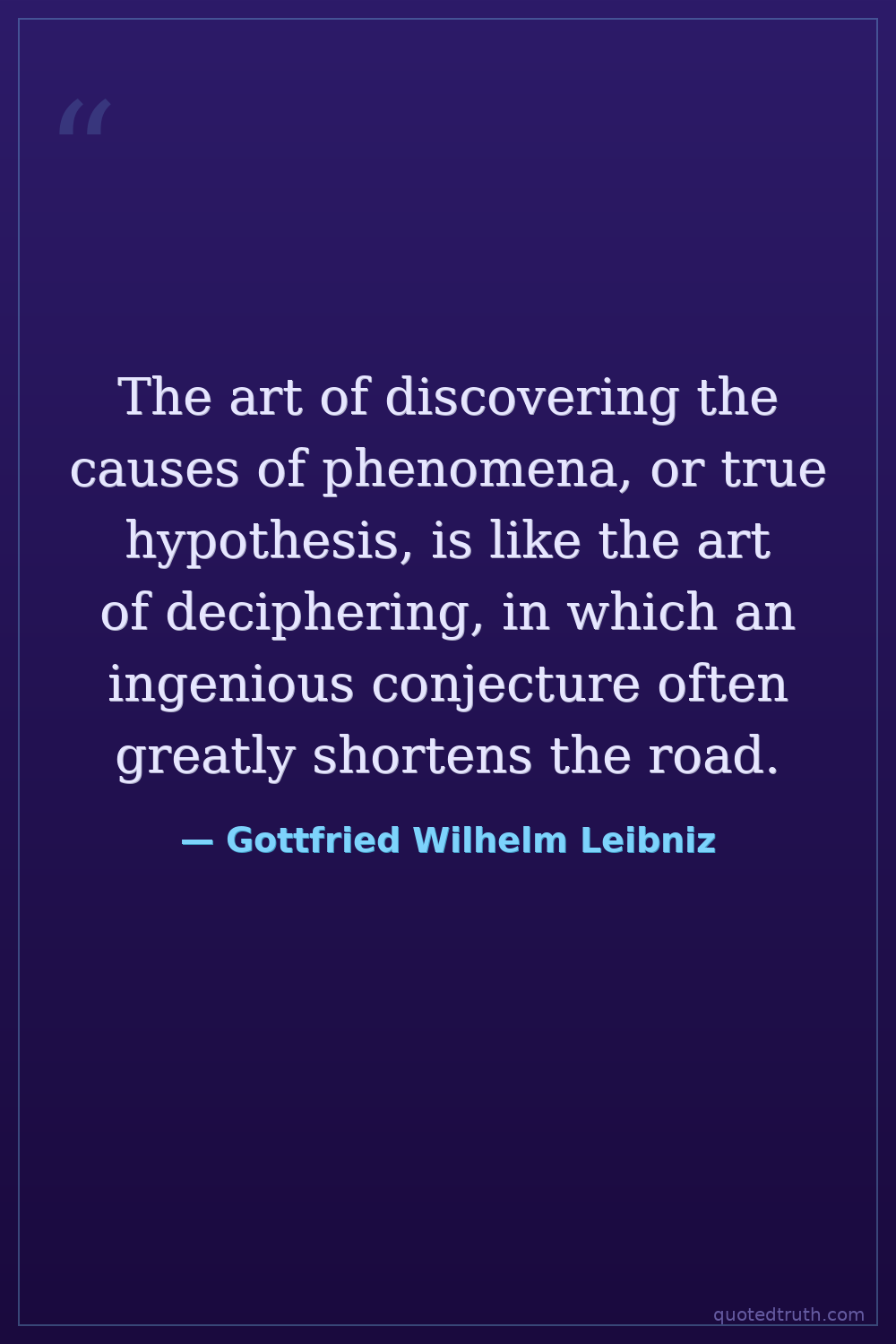 The art of discovering the causes of phenomena, or true hypothesis, is like the art of deciphering, in which an ingenious conjecture often greatly shortens the road.
