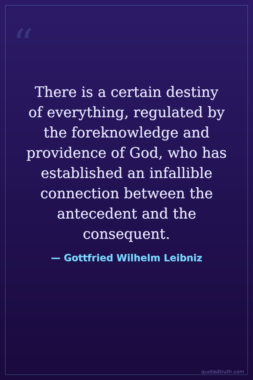 There is a certain destiny of everything, regulated by the foreknowledge and providence of God, who has established an infallible connection between the antecedent and the consequent.