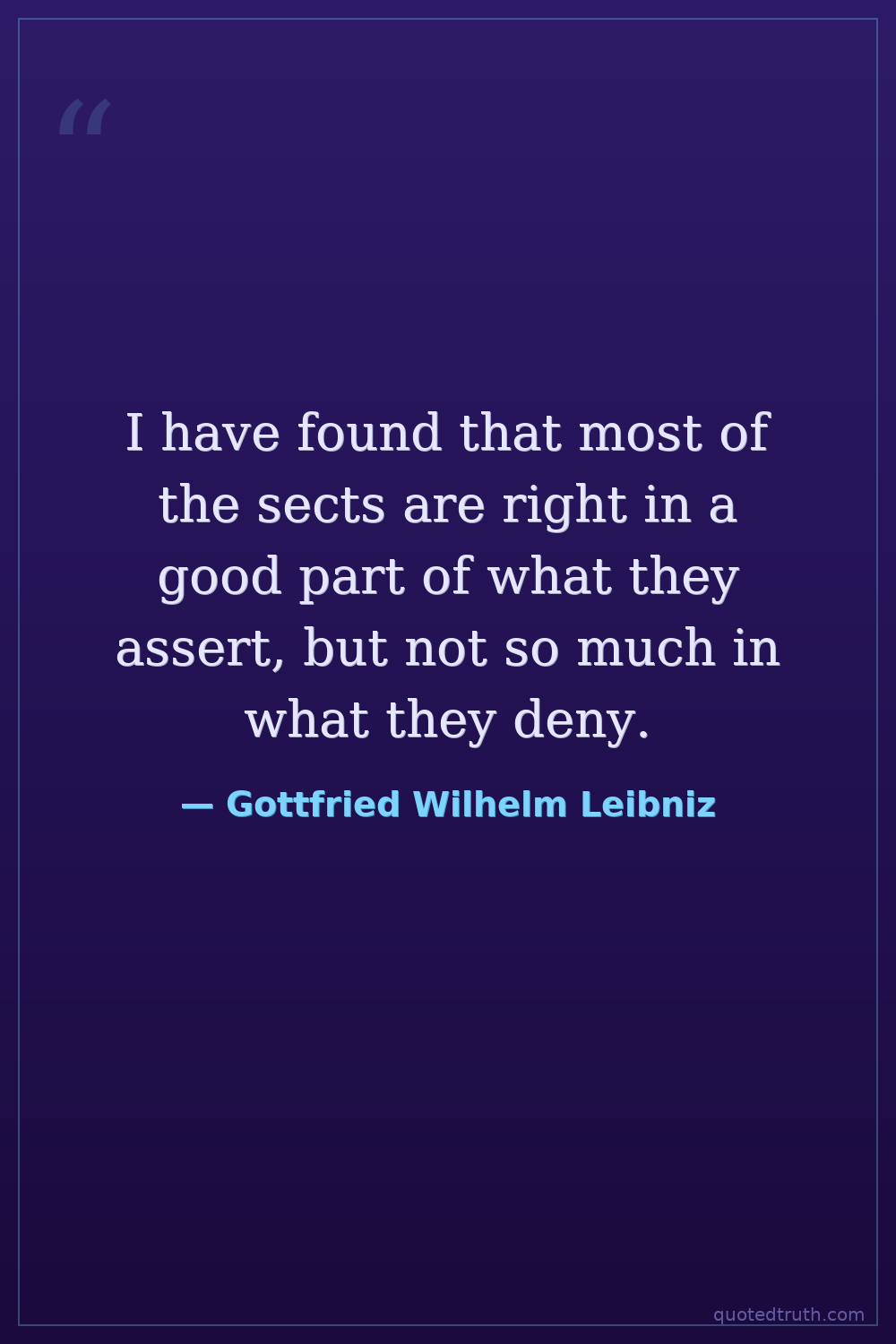 I have found that most of the sects are right in a good part of what they assert, but not so much in what they deny.