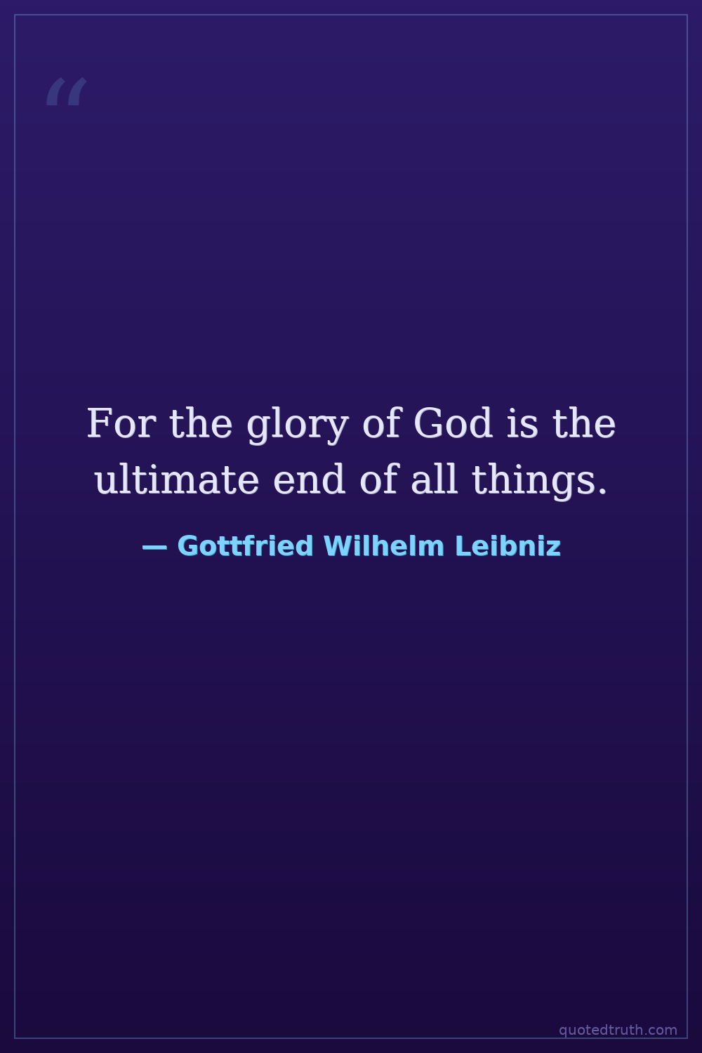 For the glory of God is the ultimate end of all things.