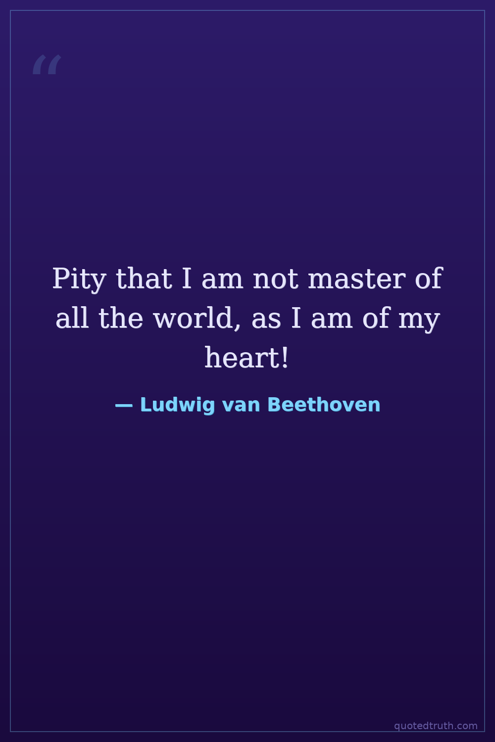 Pity that I am not master of all the world, as I am of my heart!