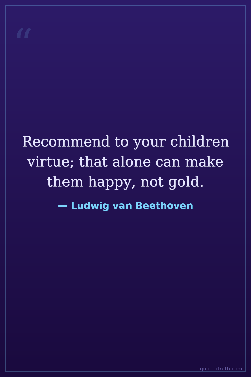 Recommend to your children virtue; that alone can make them happy, not gold.