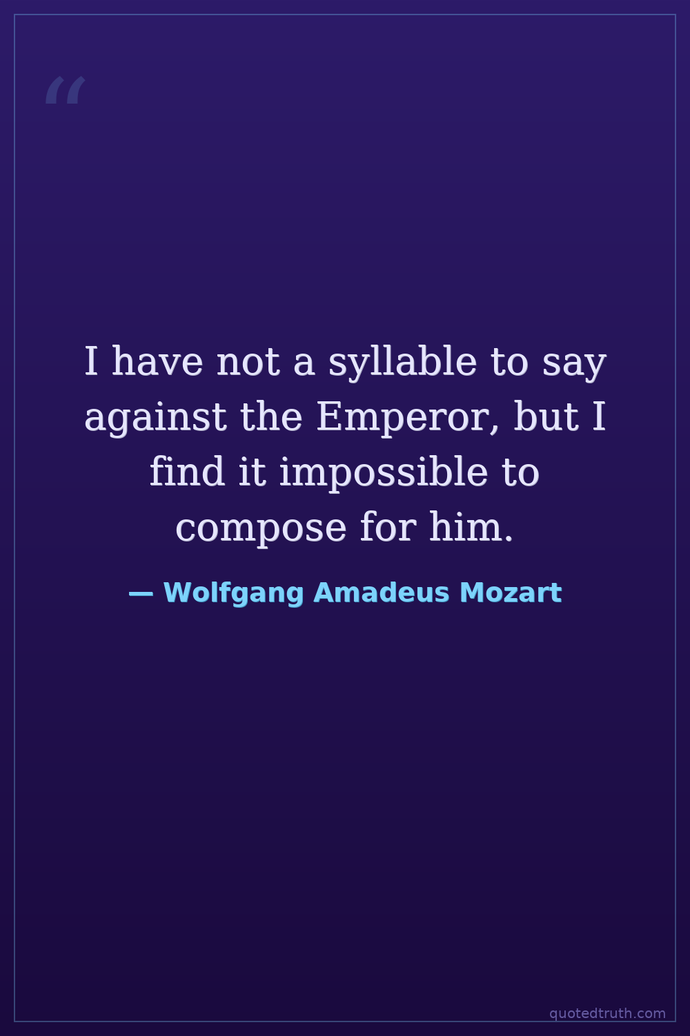 I have not a syllable to say against the Emperor, but I find it impossible to compose for him.