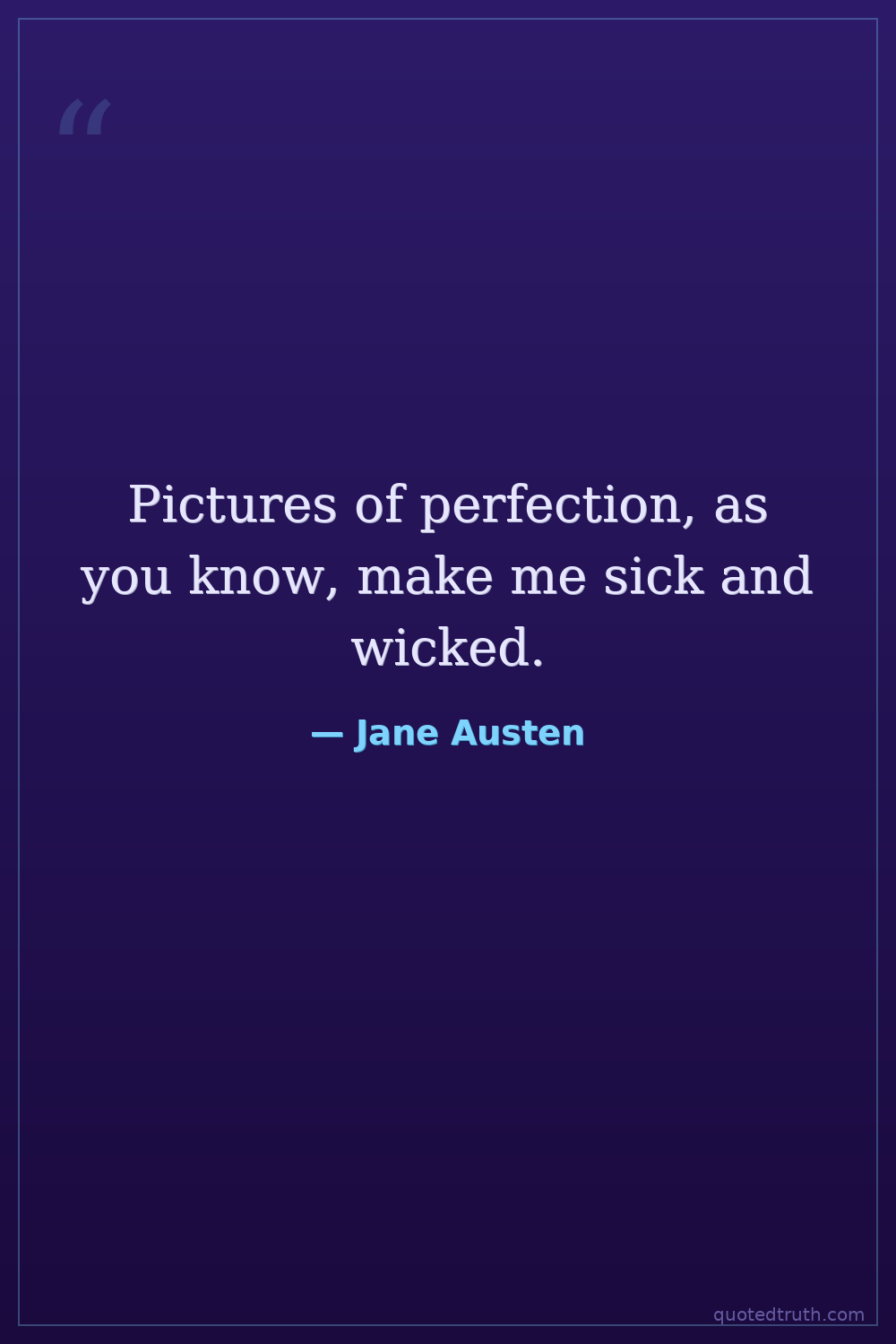 Pictures of perfection, as you know, make me sick and wicked.