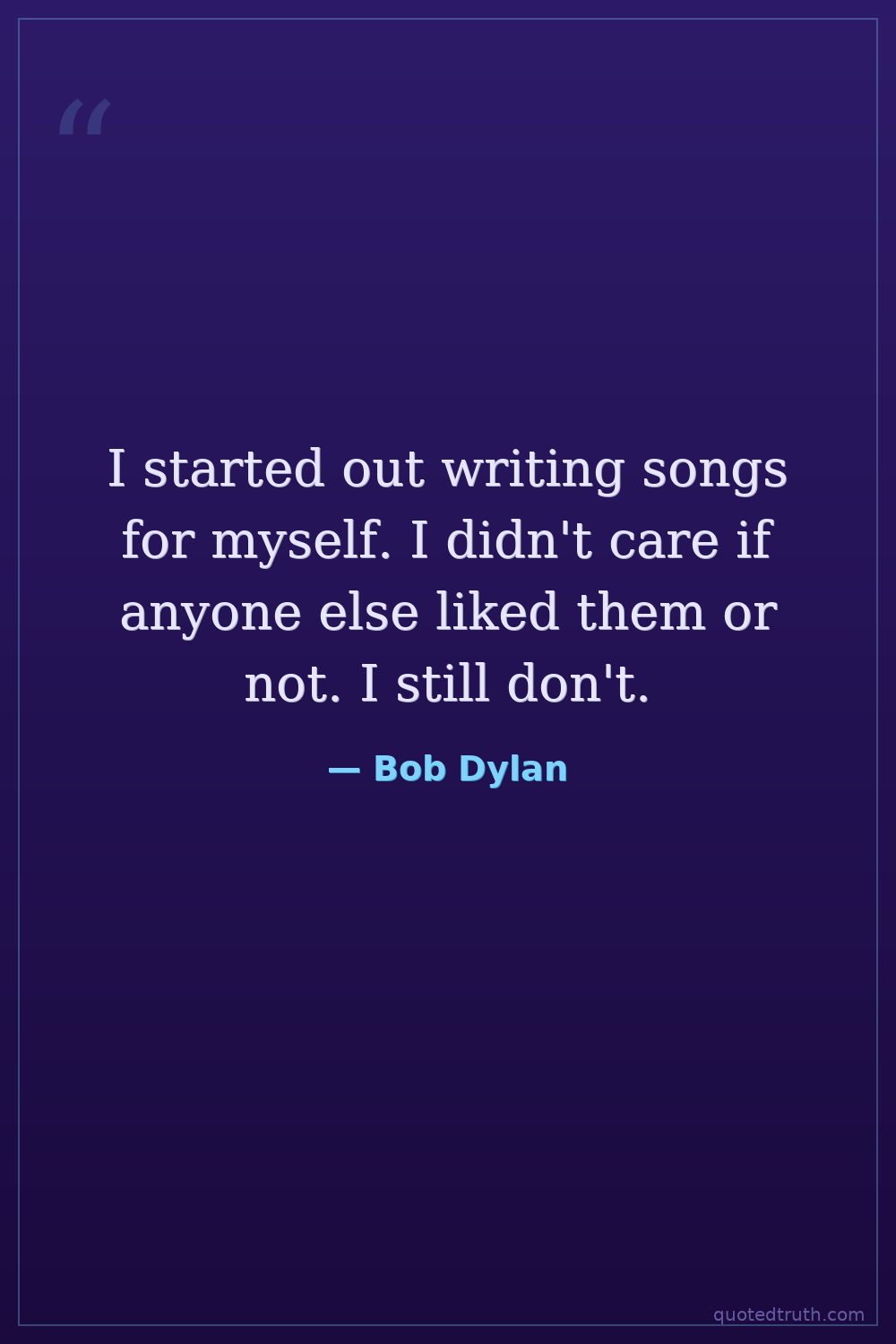 I started out writing songs for myself. I didn't care if anyone else liked them or not. I still don't.