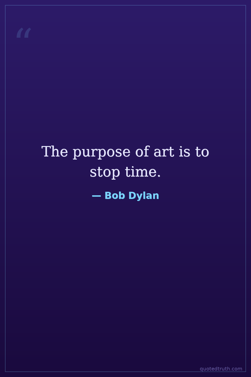 The purpose of art is to stop time.