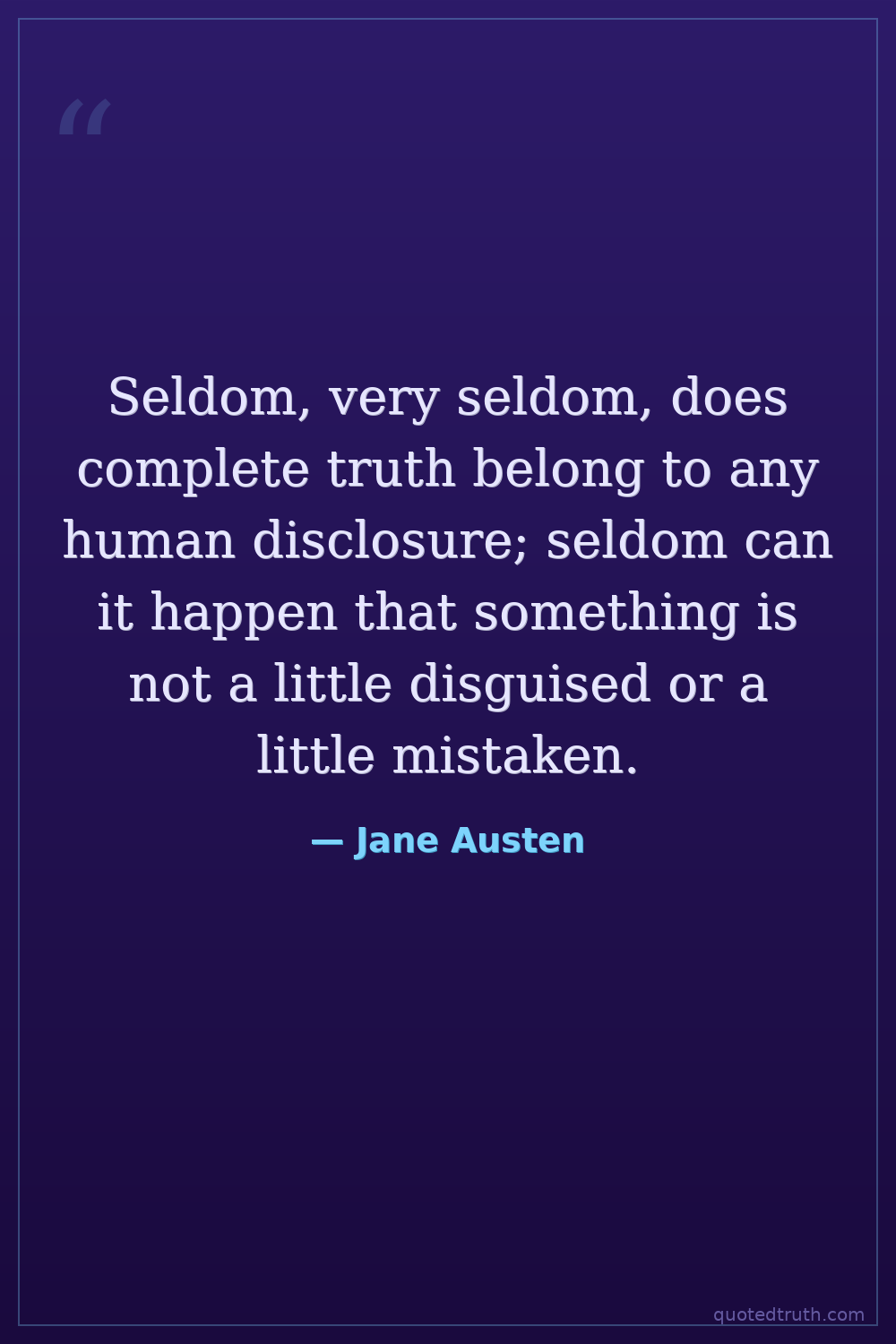 Seldom, very seldom, does complete truth belong to any human disclosure; seldom can it happen that something is not a little disguised or a little mistaken.