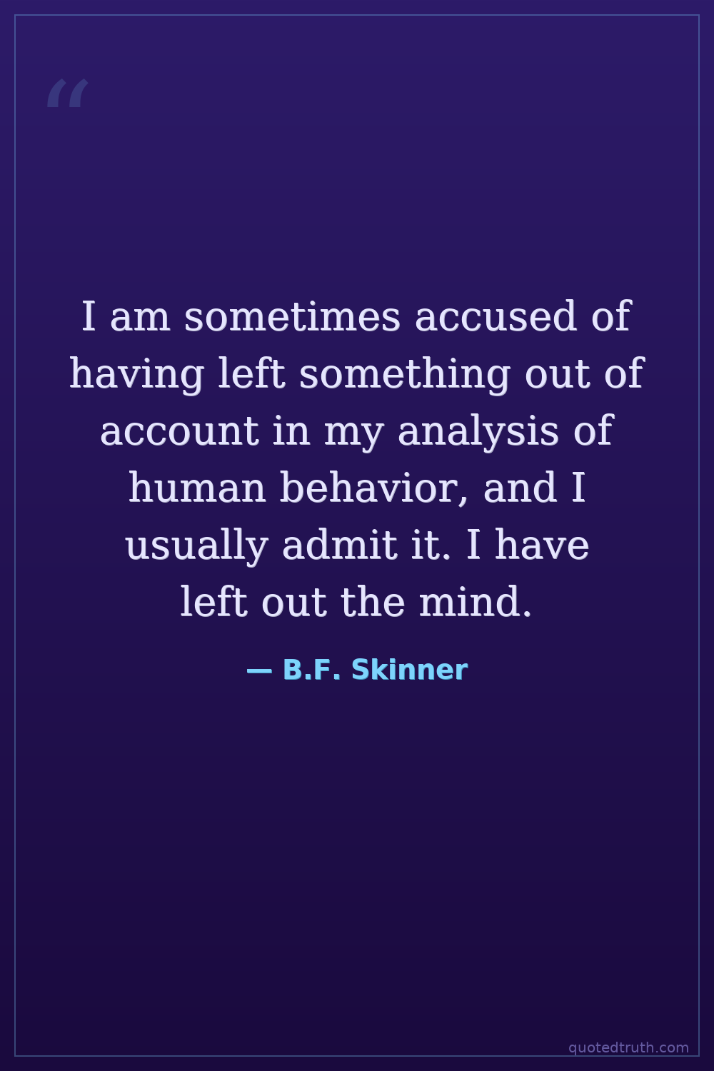 I am sometimes accused of having left something out of account in my analysis of human behavior, and I usually admit it. I have left out the mind.
