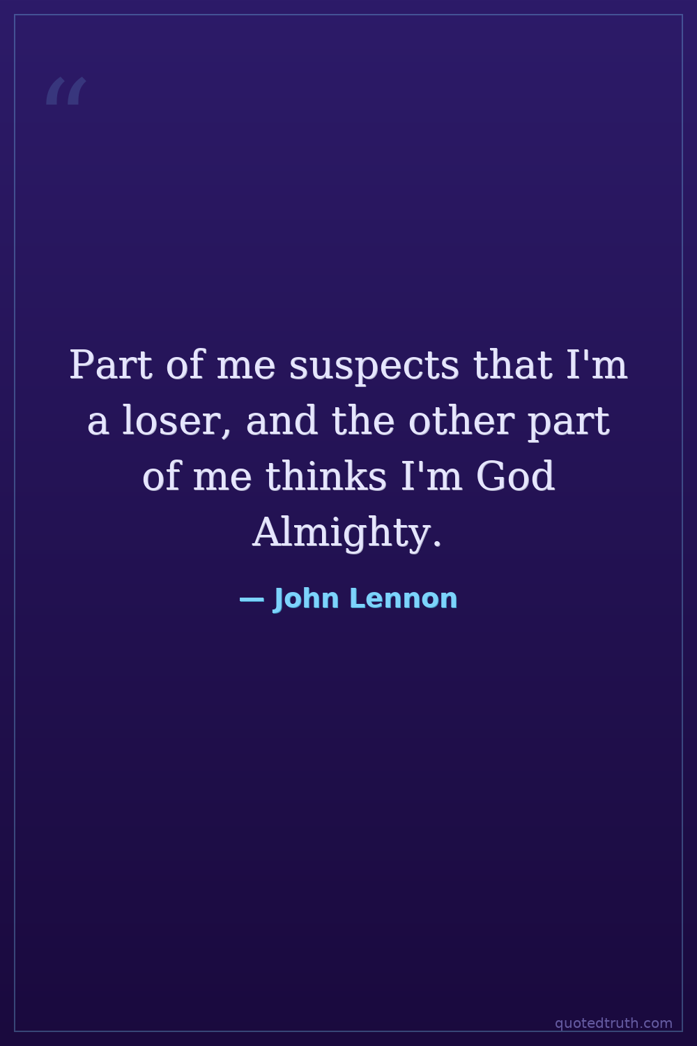 Part of me suspects that I'm a loser, and the other part of me thinks I'm God Almighty.