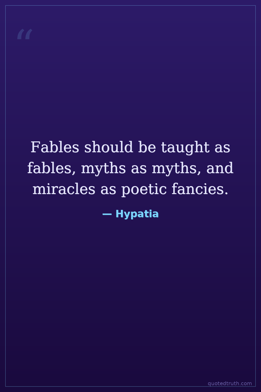 Fables should be taught as fables, myths as myths, and miracles as poetic fancies.