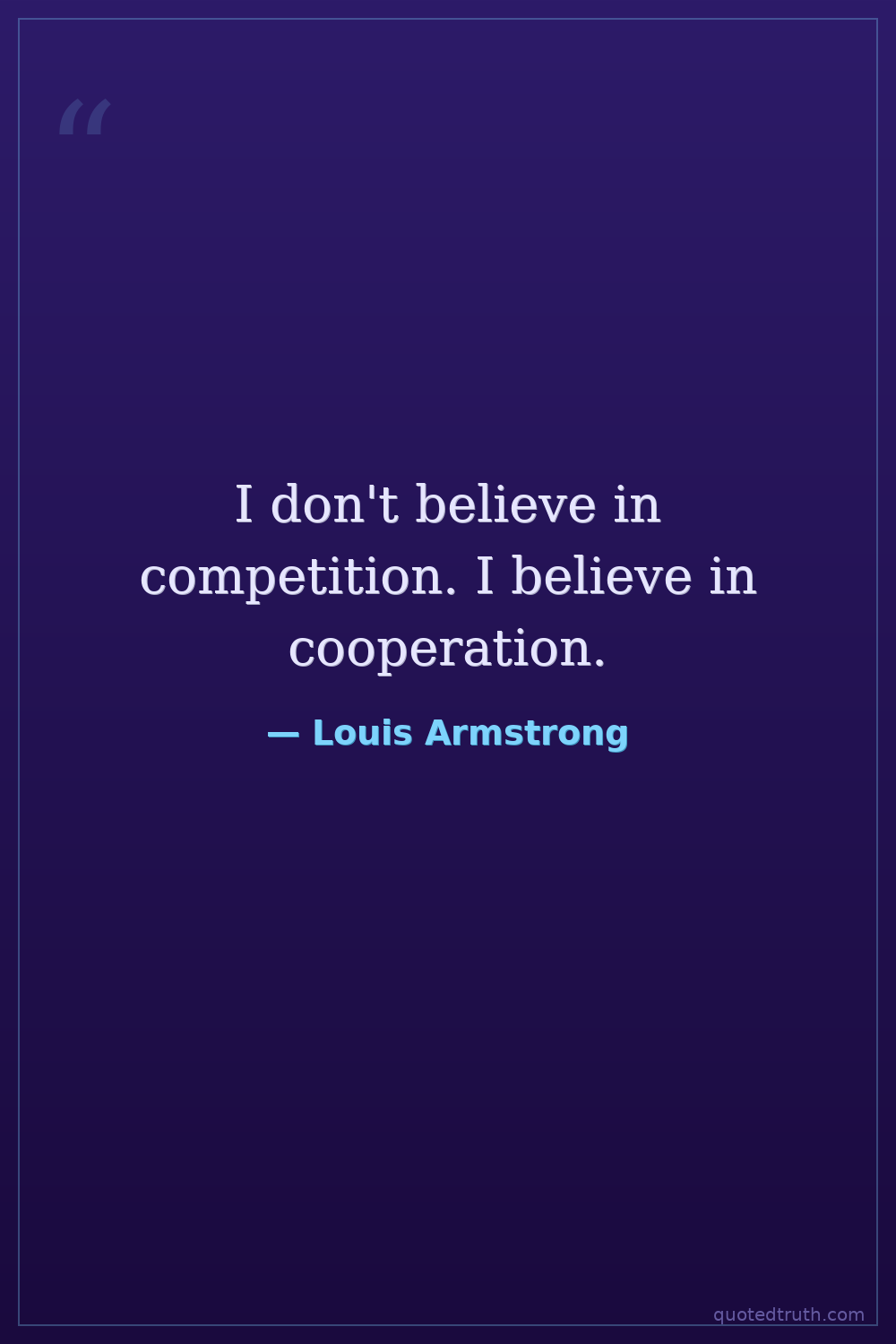 I don't believe in competition. I believe in cooperation.