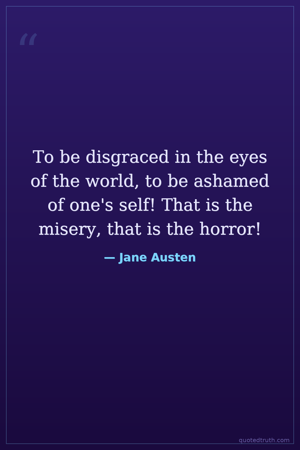 To be disgraced in the eyes of the world, to be ashamed of one's self! That is the misery, that is the horror!
