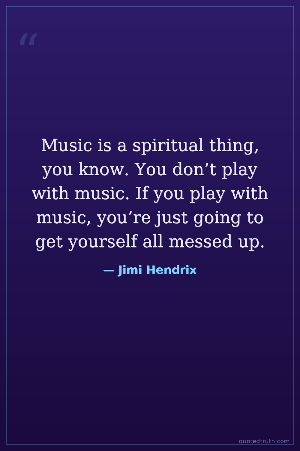 Music is a spiritual thing, you know. You don’t play with music. If you play with music, you’re just going to get yourself all messed up.