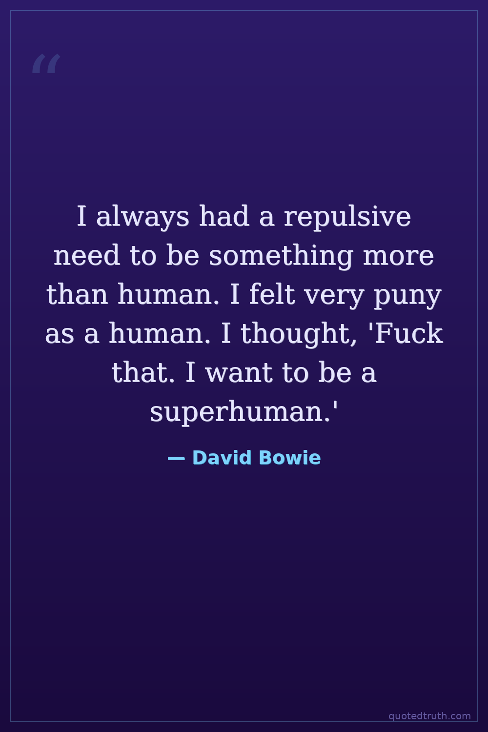I always had a repulsive need to be something more than human. I felt very puny as a human. I thought, 'Fuck that. I want to be a superhuman.'